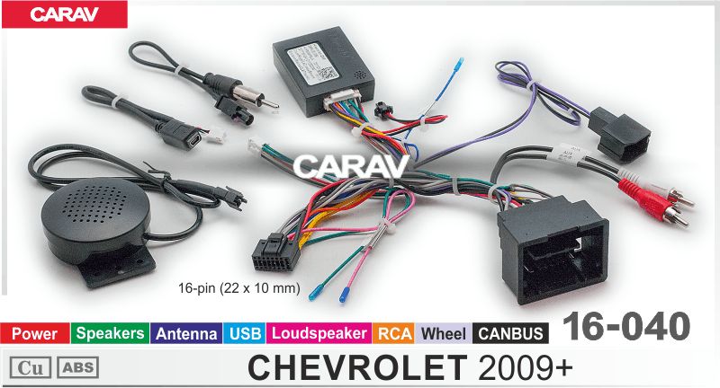 —CARAV 16-040 комплект подключения базовых магнитол для а/м CHEVROLET 2009+ / Power + Speakers + Antenna + Wheel + RCA + USB + Loudspeaker + CANBUS