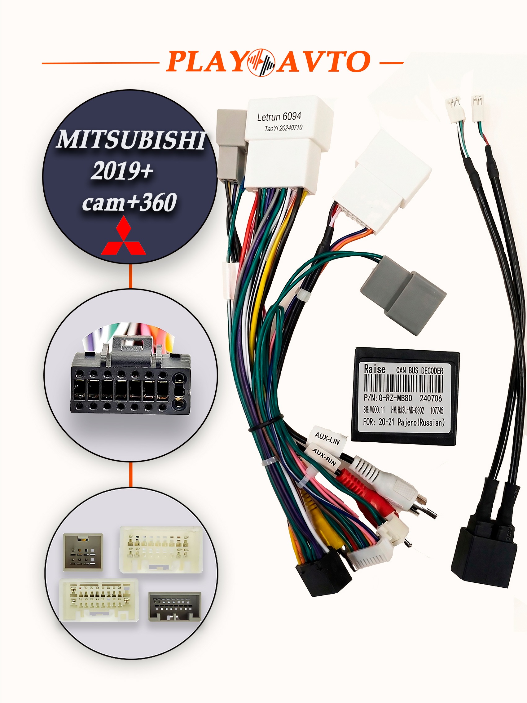—Комплект проводов для Mitsubishi 2019+ (поддержка камеры 360) canbus Letrun 6094